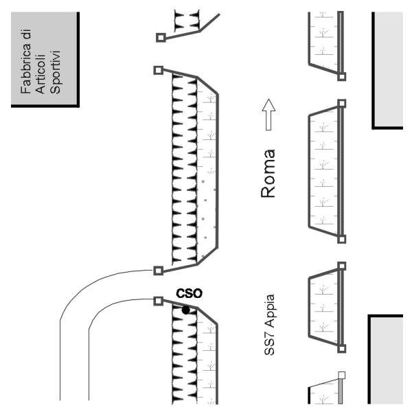 | Contrassegni | [{"simbolo_contrassegno":"B1","materializzazione":"(CSO) Bullone infisso a fianco del tombino che passa sotto alla rampa d'accesso in c. a. al terreno privato, fiancheggiante una fabbrica d'articoli sportivi."}] |