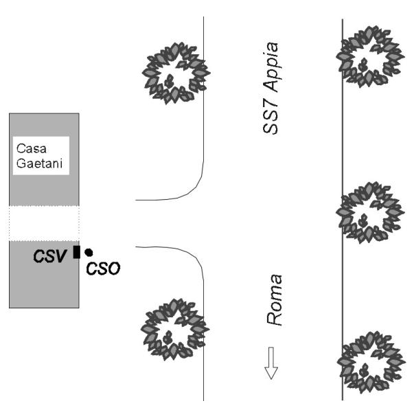 | Contrassegni | [{"simbolo_contrassegno":"P3","materializzazione":"(CSO) Pozzetto posto alla base della facciata, a sinistra dell'arco centrale."},{"simbolo_contrassegno":"V1","materializzazione":"(CSV) Mensola infissa sulla facciata, in corrispondenza del CSO."}] |
