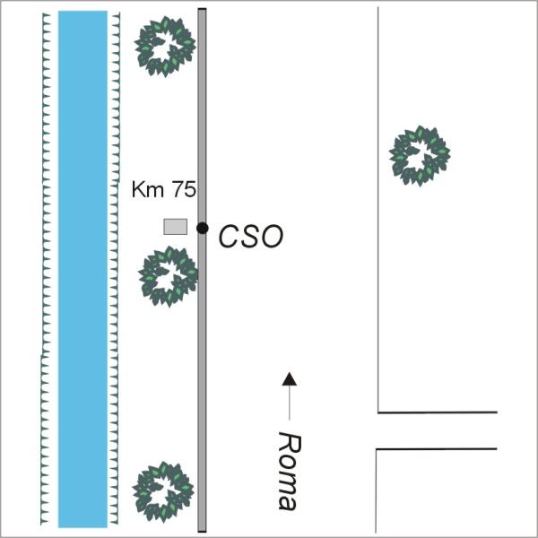 [{"simbolo_contrassegno":"B2","materializzazione":"(CSO) Bulloncino inox posto sul cordolo a bordo strada, al Km 75."}]