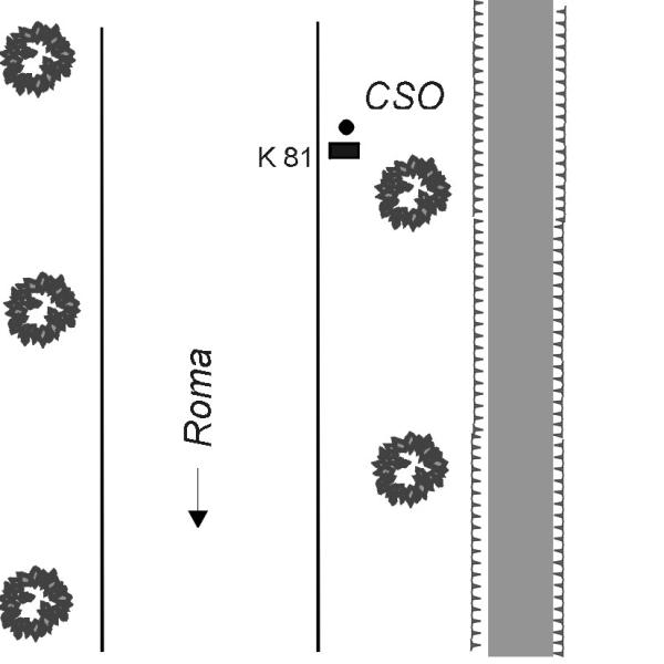 | Contrassegni | [{"simbolo_contrassegno":"P5","materializzazione":"(CSO) Pozzetto in mattoni posto alla base della pietra chilometrica, faccia verso Napoli al km 81, rialzato con tubo PVC e coperto con coperchio in ghisa."}] |
