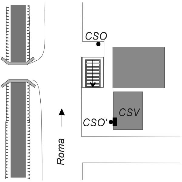 [{"simbolo_contrassegno":"B2","materializzazione":"(CSO) Bulloncino posto all'angolo del pianerottolo di cemento che porta alle scale"},{"simbolo_contrassegno":"P3","materializzazione":"CSO') Pozzetto in ghisa posto a sinistra della porta Sud di ingresso del casolare.\n 2002 – Pozzetto scomparso molto probabilmente coperto da soletta di calcestruzzo"},{"simbolo_contrassegno":"V1","materializzazione":"(CSV) Piastrina a mensola posta sulla faciata del casolare in corrispondenza del CSO"}]