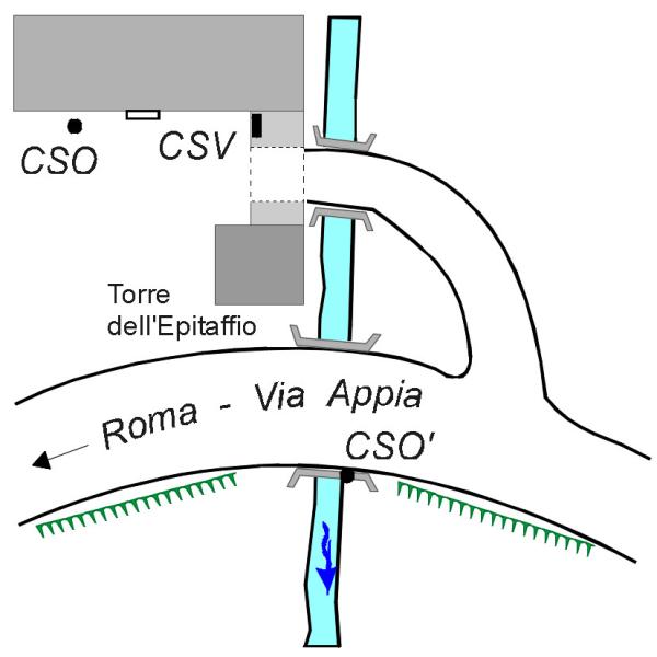 [{"simbolo_contrassegno":"P3","materializzazione":"(CSO) Pozzetto posto a sinistra della porta della casa addossata alla torre."},{"simbolo_contrassegno":"B4","materializzazione":"(CSO') Bulloncino Inox di tipo GPS infisso sulla sommit\u00e0 della spalletta a valle, estremit\u00e0 verso Napoli, del ponticello prossimo alla torre,"},{"simbolo_contrassegno":"V2","materializzazione":"(CSV) Piastrina in ghisa infissa sul muro, all'interno del cortile, a sinistra dell'arco addossato alla Torre."}]