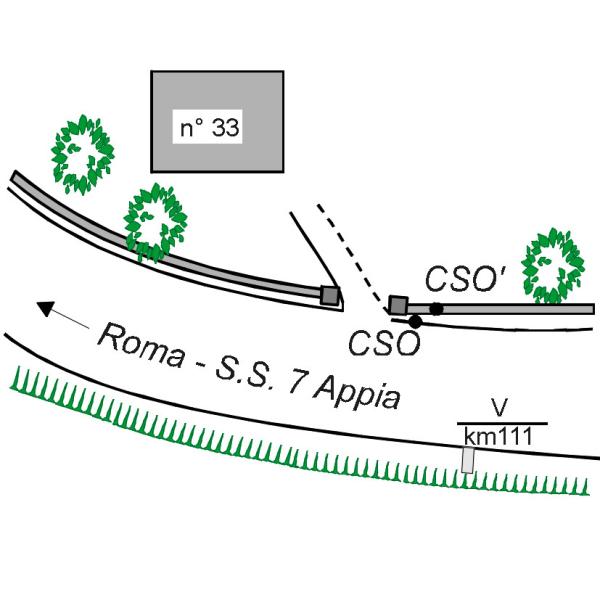 | Contrassegni | [{"simbolo_contrassegno":"B1","materializzazione":"(CSO) Bullone infisso nel muro di recinzione in c.a, a destra dell'accesso alla propriet\u00e0 col numero civico 33."},{"simbolo_contrassegno":"B4","materializzazione":"(CSO') Bulloncino Inox di tipo GPS infisso sulla sommit\u00e0 dello stesso muro, in prossimit\u00e0 del CSO."}] |