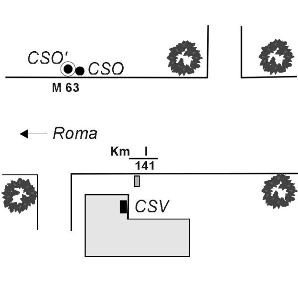 [{"simbolo_contrassegno":"P3","materializzazione":"(CSO) Pozzetto posto alla base della pietra miliare 63, faccia volta verso Napoli."},{"simbolo_contrassegno":"B3","materializzazione":"(CSO') Cerchio inciso sulla sommit\u00e0 della pietra miliare 63."},{"simbolo_contrassegno":"V1","materializzazione":"(CSV) Mensola infissa sulla facciata laterale sinistra della casa posta di fronte alla pietra miliare 63, in prossimit\u00e0 dello spigolo destro."}]