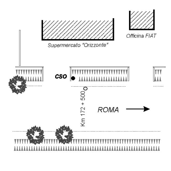 | Contrassegni | [{"simbolo_contrassegno":"B1","materializzazione":"(CSO) Bullone posto sulla testa dell'opera di intubamento della fossetta di scolo dell'acqua, lato direzione Capua, in corrispondenza della piattaforma in cemento di accesso al piazzale del supermercato."}] |