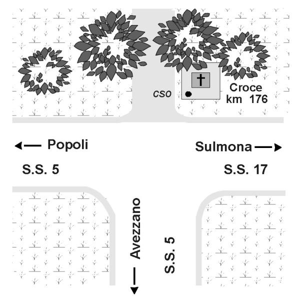 [{"simbolo_contrassegno":"B4","materializzazione":"(CSO) Bulloncino inox tipo GPS infisso nel basamento della croce, lato strada, ubicata al bivio per Sulmona, in corrispondenza del K.176."}]