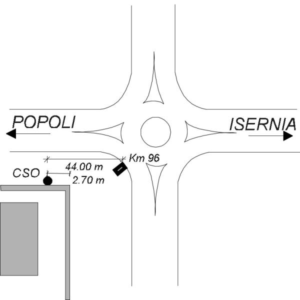 | Contrassegni | [{"simbolo_contrassegno":"B1","materializzazione":"(CSO) Bullone in ghisa infisso in corrispondenza dello spigolo sinistro nel muro di recinzione in cemento armato del \"Centro Commerciale Ovidio\", ubicato all'altezza del K.95,956."}] |