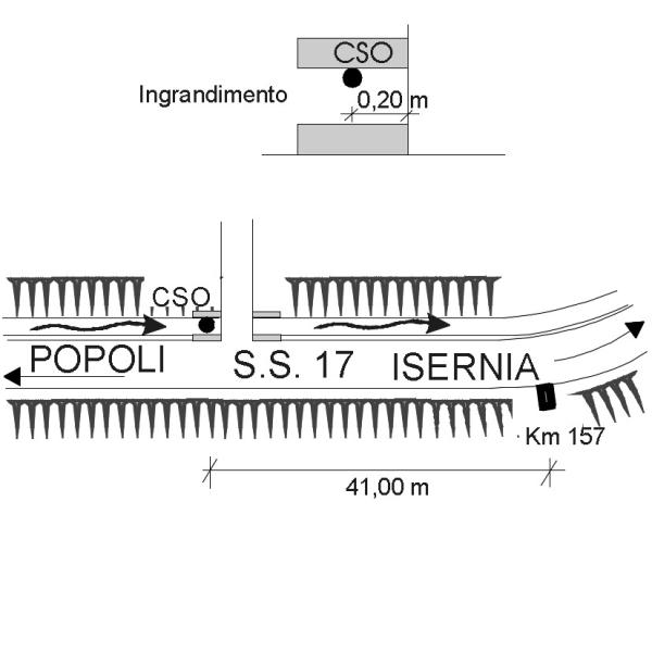| Contrassegni | [{"simbolo_contrassegno":"B1","materializzazione":"(CSO) Bullone infisso nella paretina in cemento armato della cunetta di scolo acque ubicata all'imbocco della stradina al K. 156,959."}] |