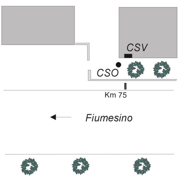 | Contrassegni | [{"simbolo_contrassegno":"P3","materializzazione":"(CSO) Pozzetto posto alla base della facciata dell'ultima palazzina alloggi, venendo da Fiumesino. presso lo spigolo sinistro."},{"simbolo_contrassegno":"V2","materializzazione":"(CSV) Piastrina in ghisa IGM infissa sulla stessa facciata, in corrispondenza del CSO."}] |