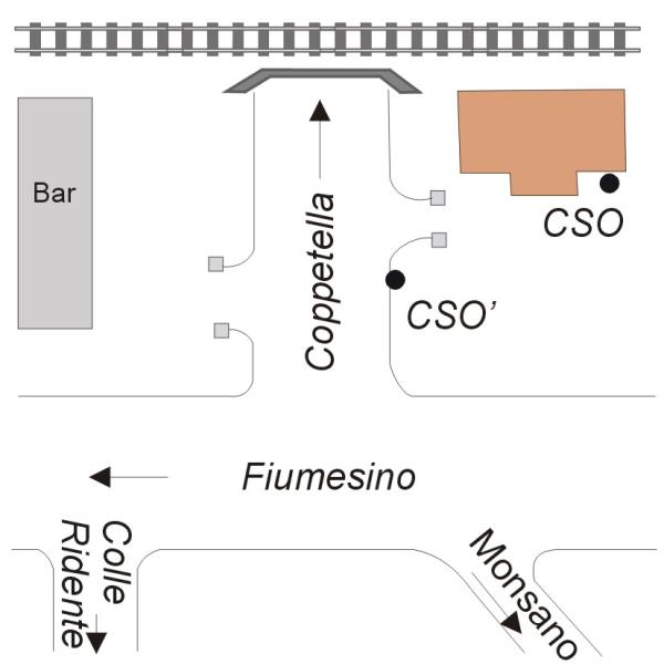 | Contrassegni | [{"simbolo_contrassegno":"B1","materializzazione":"(CSO) Bullone infisso sul retro del casello, presso lo spigolo destro."},{"simbolo_contrassegno":"B7","materializzazione":"(CSO') Centrino GPS della Regione Marche posto sul cordolo di cemento a bordo strada, a destra del cancello d'ingresso al casello."}] |