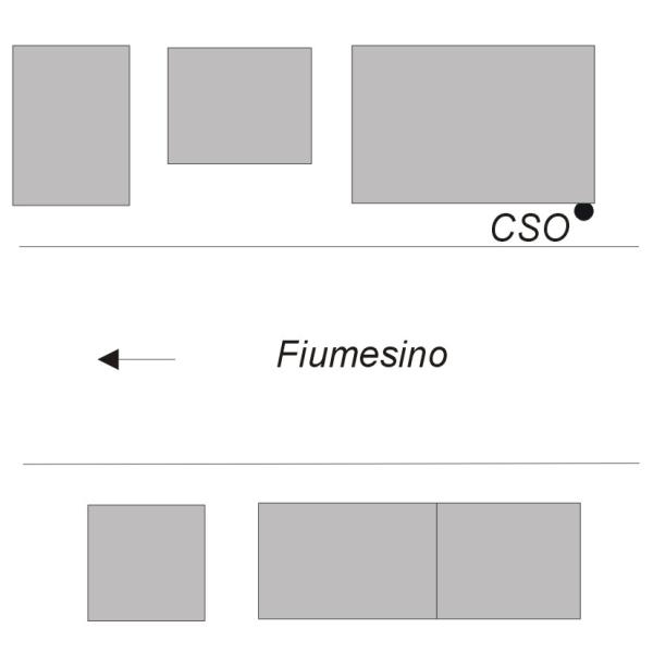 [{"simbolo_contrassegno":"B1","materializzazione":"(CSO) Bullone infisso sulla facciata dell'edificio, presso lo spigolo destro."}]