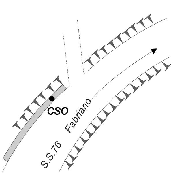 | Contrassegni | [{"simbolo_contrassegno":"B2","materializzazione":"(CSO) Bulloncino cementato sul cordolo della strada, a monte di un bivio con la strada sterrata."}] |