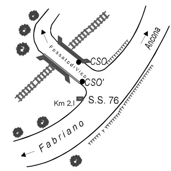 | Contrassegni | [{"simbolo_contrassegno":"B1","materializzazione":"(CSO) Bullone infisso sull'estremo destro del cordolo in cls del ponte stradale"},{"simbolo_contrassegno":"B1","materializzazione":"(CSO') Bullone infisso sul cordolo in cls, lato sinistro, direzione Fossato di Vico"}] |