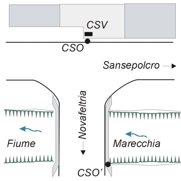| Contrassegni | [{"simbolo_contrassegno":"P3","materializzazione":"(CSO) Pozzetto in ghisa interrato alla base della facciata, a m 0,80 dallo spigolo sinistro, protetto da una mattonella di cm 20 x 20."},{"simbolo_contrassegno":"B7","materializzazione":"(CSO') Sfera in ottone infissa sul cordolo in c.a. del ponte, lato a monte, estremit\u00e0 rivolta verso Novafeltria."},{"simbolo_contrassegno":"V2","materializzazione":"(CSV) Piastrina in ghisa IGM infissa sulla facciata, in corrispondenza del CSO."}] |