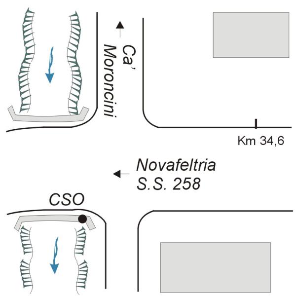 [{"simbolo_contrassegno":"B2","materializzazione":"(CSO) Bulloncino Inox Anonimo infisso sulla spalletta a valle del ponte al bivio per Ca' Moroncini"}]