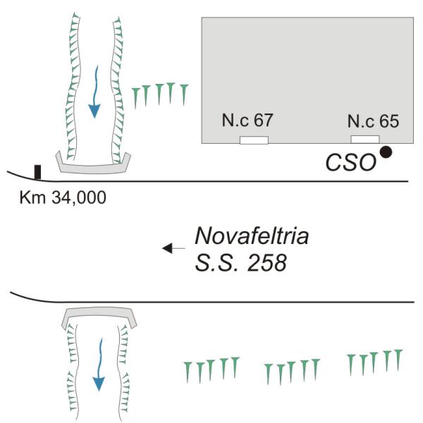 | Contrassegni | [{"simbolo_contrassegno":"P5","materializzazione":"(CSO) Pozzetto interrato alla base della facciata, a destra della porta di destra, rialzato con tubo in plastica e coperchio in ghisa."}] |