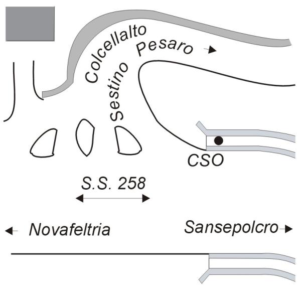 [{"simbolo_contrassegno":"B4","materializzazione":"(CSO) Bulloncino Inox universale infisso sul marciapiede del viadotto, lato della strada laterale per Sestino."}]