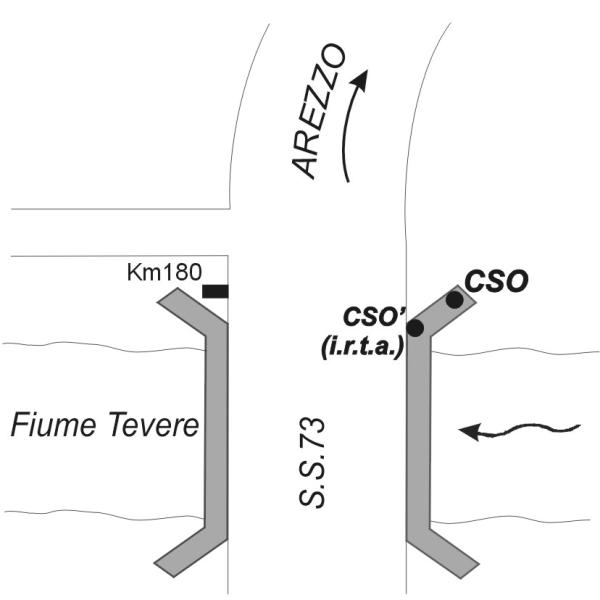 | Contrassegni | [{"simbolo_contrassegno":"B2","materializzazione":"(CSO) Bulloncino in acciaio infisso sulla spalla a monte, lato destro, del ponte sul Tevere"},{"simbolo_contrassegno":"B2","materializzazione":"(CSO') Centrino metallico di altro ente infisso in prossimit\u00e0 del CSO"}] |