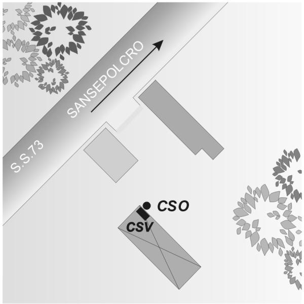 | Contrassegni | [{"simbolo_contrassegno":"P3","materializzazione":"(CSO) Chiusino in ghisa posto alla base del magazzino, presso lo spigolo lato strada S.S. 73"},{"simbolo_contrassegno":"V2","materializzazione":"(CSV) Piastrina in corrispondenza del CSO"}] |