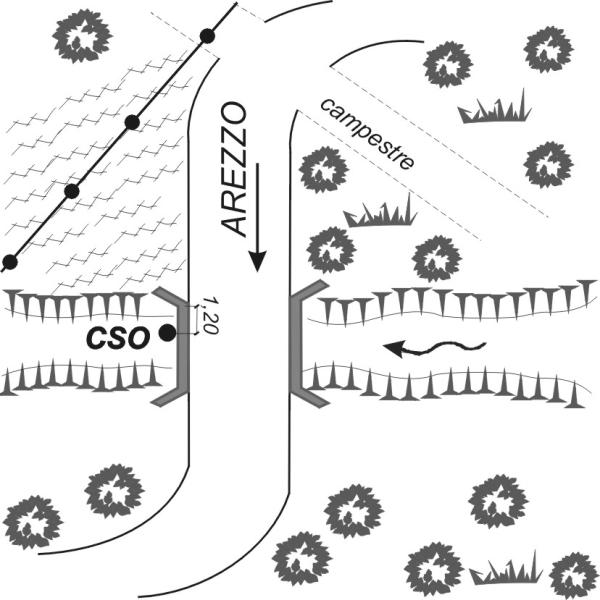 | Contrassegni | [{"simbolo_contrassegno":"B1","materializzazione":"(CSO) Bullone infisso sul parapetto esterno, lato a valle, del ponticello presente alle Coste di Volterrena"}] |
