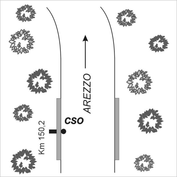 | Contrassegni | [{"simbolo_contrassegno":"B1","materializzazione":"(CSO) Bullone infisso al centro della campata del ponte in corrispondenza del Km 150,200 della ex S.S. 73"}] |