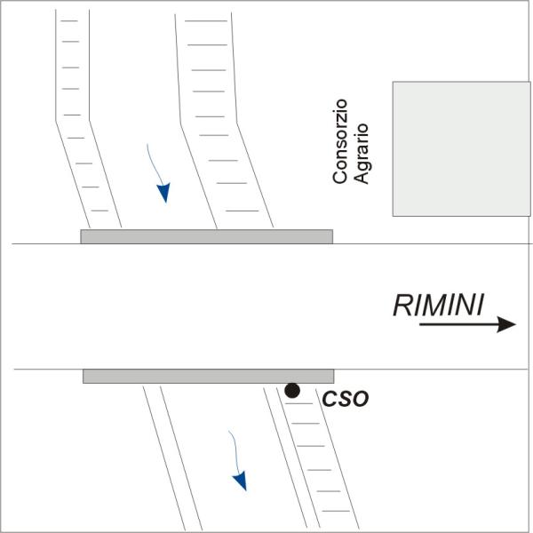| Contrassegni | [{"simbolo_contrassegno":"B1","materializzazione":"(CSO) Bullone infisso sulla spalla destra , in c.a. del ponte, andando verso Rimini."}] |