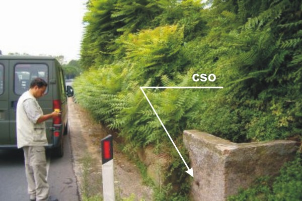 [{"simbolo_contrassegno":"B1","materializzazione":"(CSO) Bullone infisso sul tombino."},{"simbolo_contrassegno":"V2","materializzazione":"( CSV ) Piastrina sulla facciata della casa, a m 1,65 dallo stipide della porta."}]