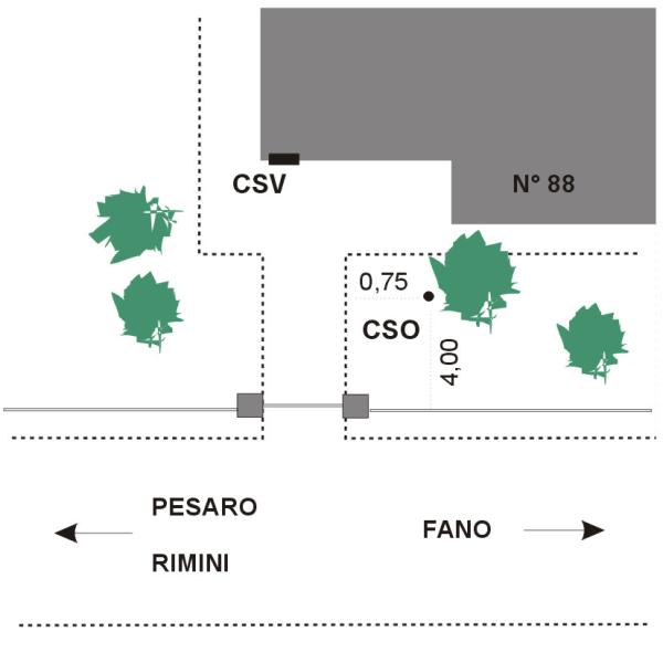 [{"simbolo_contrassegno":"P3","materializzazione":"(CSO) Pozzetto ubicato nell'aiuola, come da schizzo monografico."},{"simbolo_contrassegno":"V2","materializzazione":"( CSV ) Piastrina infissa sulla facciata della casa al n\u00b088, presso lo spigolo di sinistra."}]