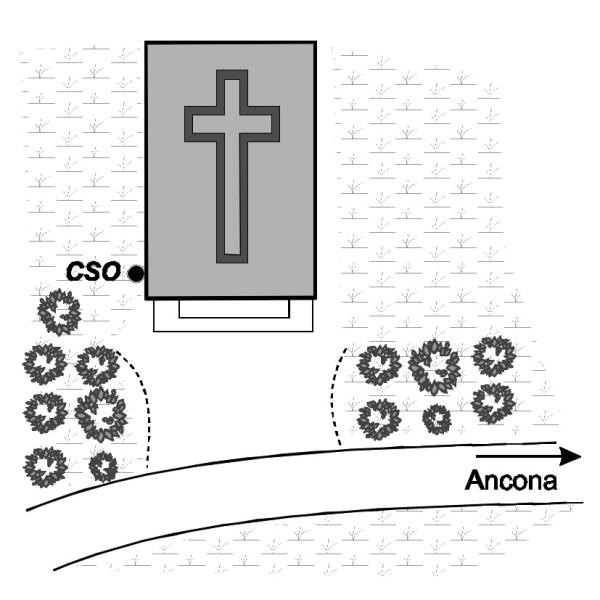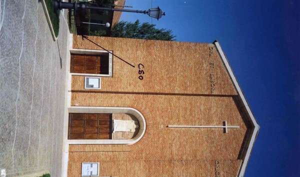 [{"simbolo_contrassegno":"B1","materializzazione":"(CSO) Bullone infisso sullo spigolo della parete sinistra laterale della chiesa."}]