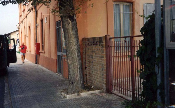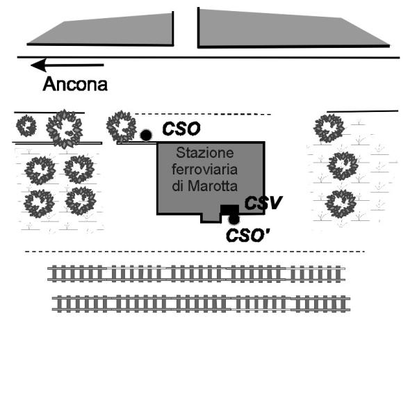 | Contrassegni | [{"simbolo_contrassegno":"B1","materializzazione":"(CSO) Bullone infisso sul muro a mattoni di recinzione della stazione ferroviaria sulla destro del portone principale."},{"simbolo_contrassegno":"B8","materializzazione":"(CSO') Soglia in marmo di ingresso alla biglietteria, lato binari ( al centro della soglia e a 2 cm. dal bordo esterno)."},{"simbolo_contrassegno":"V3","materializzazione":"(CSV) Sulla facciata lato binari a destra del casotto del capostazione."}] |