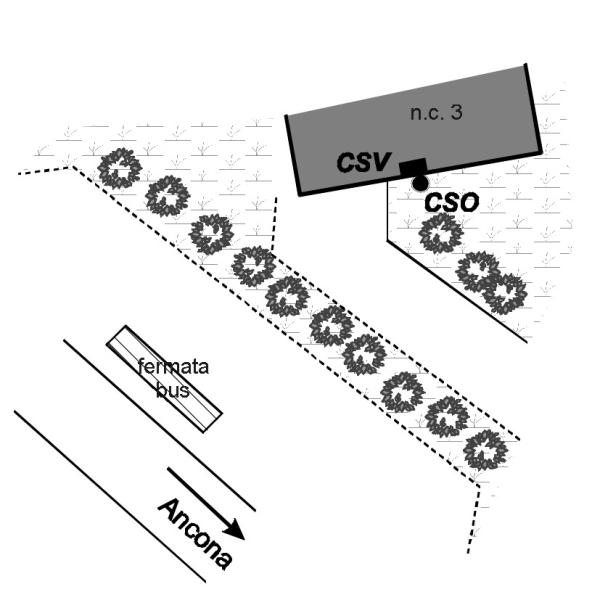 | Contrassegni | [{"simbolo_contrassegno":"P3","materializzazione":"(CSO) Alla base della facciata in prossimit\u00e0 dello stipide destro della porta."},{"simbolo_contrassegno":"V1","materializzazione":"(CSV) Sulla facciata, in corrispondenza del CSO"}] |