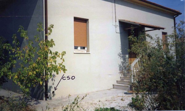 | Contrassegni | [{"simbolo_contrassegno":"B1","materializzazione":"(CSO) Sulla facciata, in prossimit\u00e0 dello spigolo sinistro."},{"simbolo_contrassegno":"B4","materializzazione":"(CSO') Chiodo del tipo Gps fissato sulla soletta di un tombino nel giardino prospiciente la clinica veterinaria."}] |