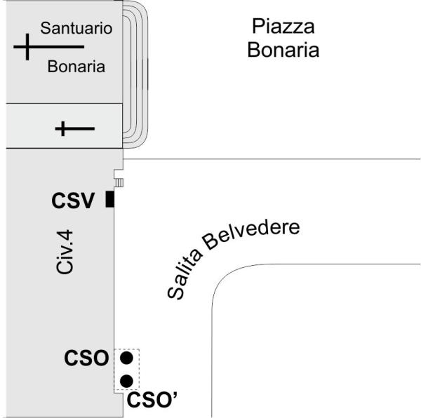 | Contrassegni | [{"simbolo_contrassegno":"P5","materializzazione":"Contrassegno in bronzo in chiusino contenuto in pozzetto protetto da piastra in ghisa presso la porta sinistra della canonica."},{"simbolo_contrassegno":"V1","materializzazione":"Sulla facciata della canonica presso la porta destra."}] |