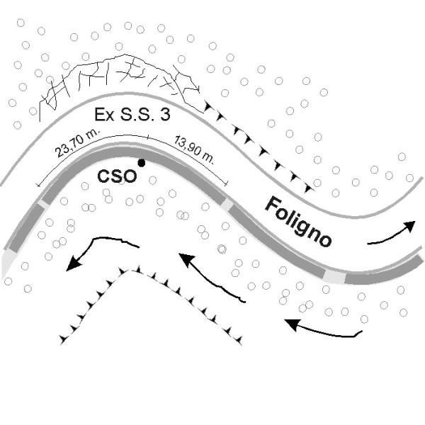| Contrassegni | [{"simbolo_contrassegno":"B1","materializzazione":"(CSO) Bullone infisso sul muro di sostegno destro della strada, in direzione di Foligno."}] |