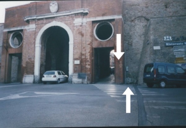 | Contrassegni | [{"simbolo_contrassegno":"P5","materializzazione":"(CSO) Pozzetto posto alla base dell'ultimo pilastro di destra entrando in citt\u00e0."},{"simbolo_contrassegno":"V1","materializzazione":"(CSV) Mensolina infissa sul pilastro suddetto."},{"simbolo_contrassegno":"B4","materializzazione":"(CSO') Bulloncino Inox di tipo GPS infisso sul parapetto di sinistra del Belvedere antistante la Porta."}] |