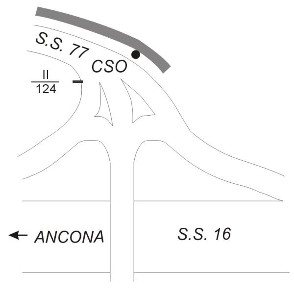 | Contrassegni | [{"simbolo_contrassegno":"B1","materializzazione":"(CSO) Bullone infisso sul muro di contenimento della strada, all'incrocio con la s.s. 77."}] |