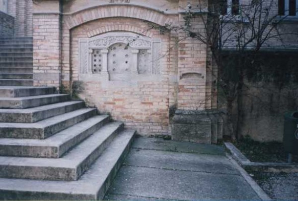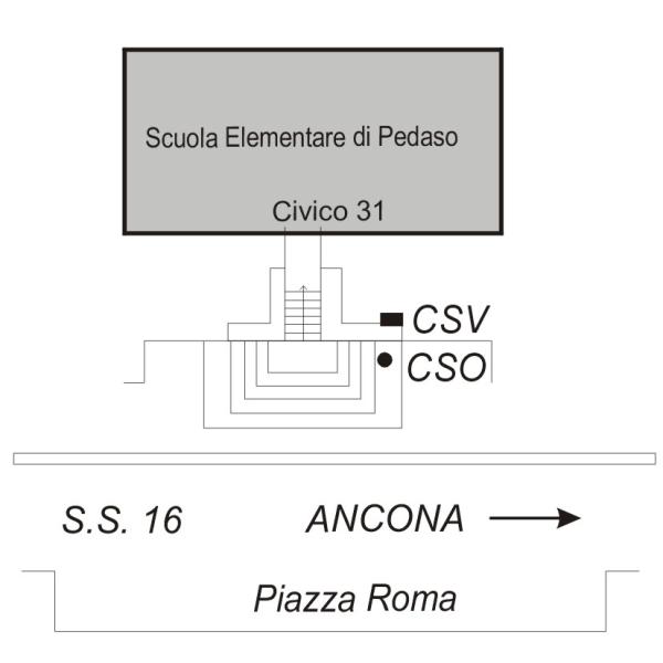 | Contrassegni | [{"simbolo_contrassegno":"P3","materializzazione":"(CSO) Pozzetto posto alla base del muro esterno, a destra della gradinata d'accesso alla scuola."},{"simbolo_contrassegno":"V1","materializzazione":"(CSV) Mensola IGM infissa sulla seconda lesena del muro laterale, a destra della gradinata di accesso alla scuola."}] |