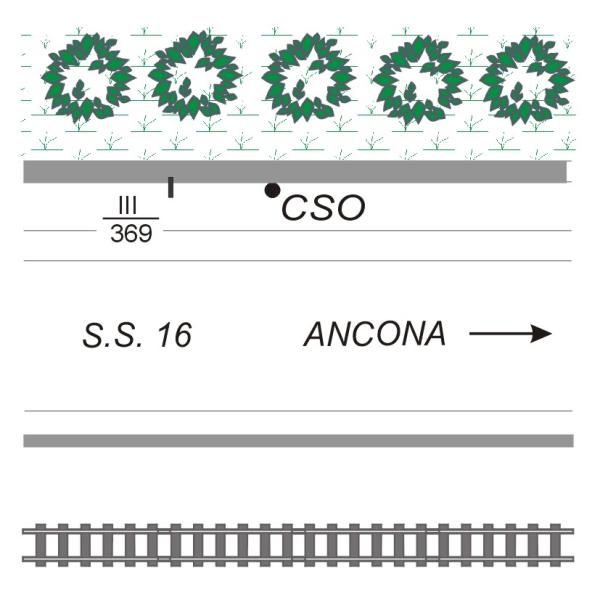 | Contrassegni | [{"simbolo_contrassegno":"B1","materializzazione":"(CSO) Bullone infisso sul muro di contenimento, lato sinistro in direzione di Ancona."}] |
