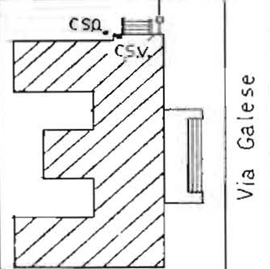 [{"simbolo_contrassegno":"P1","materializzazione":"Alla base della parete nord-est, nell'angolo di risega, a destra della gradinata dell'ingresso laterale."},{"simbolo_contrassegno":"V1","materializzazione":"Sulla parete in corrispondenza del cso."},{"simbolo_contrassegno":"P1","materializzazione":"Alla base della parete nord-est, nell'angolo di risega, a destra della gradinatadell'ingresso laterale."}]