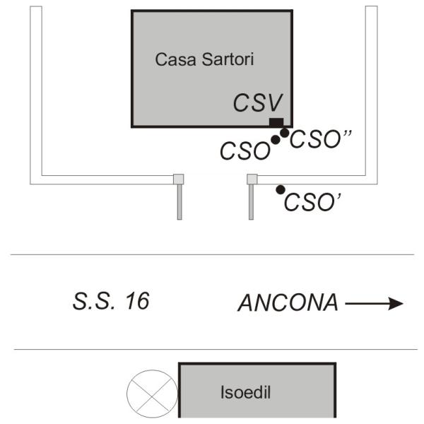 | Contrassegni | [{"simbolo_contrassegno":"P3","materializzazione":"(CSO) Pozzetto posto alla base dell'edificio, nei pressi dello spigolo destro."},{"simbolo_contrassegno":"V1","materializzazione":"(CSV) Mensola IGM infissa sulla facciata, in corrispondenza del CSO."},{"simbolo_contrassegno":"B1","materializzazione":"(CSO') Bullone infisso sul muro di recinzione a destra del cancello di accesso."},{"simbolo_contrassegno":"B2","materializzazione":"(CSO'') Chiodo Inox d'altro ente infisso sul bordo del pozzetto quadrato in cemento racchiudente il Cso IGM."}] |