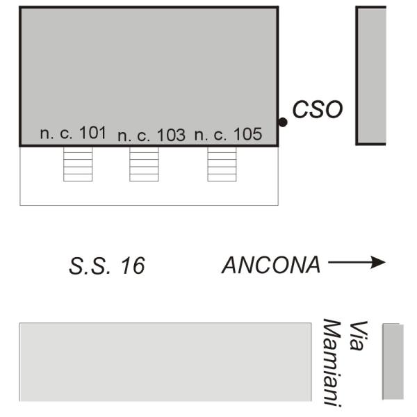| Contrassegni | [{"simbolo_contrassegno":"B1","materializzazione":"(CSO) Bullone infisso nell'angolo della parete laterale destra dell'edificio al civ. 105."}] |