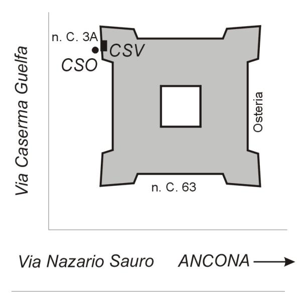 | Contrassegni | [{"simbolo_contrassegno":"B1","materializzazione":"(CSO) Bullone infisso alla base della facciata che d\u00e0 su Via Caserma Guelfa (strada privata)."},{"simbolo_contrassegno":"V1","materializzazione":"(CSV) Mensolina infissa sulla facciata dell'edificio di fronte la strada privata caserma guelfa"}] |