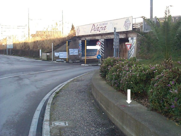 | Contrassegni | [{"simbolo_contrassegno":"B4","materializzazione":"(CSO) Bulloncino Inox di tipo GPS infisso sul muretto di cemento a protezione del marciapiede."},{"simbolo_contrassegno":"V1","materializzazione":"(CSV) Mensolina infissa sulla pila centrale del sottovia ferroviario"}] |