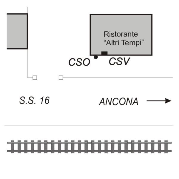 | Contrassegni | [{"simbolo_contrassegno":"B1","materializzazione":"(CSO) Bullone infisso a sinistra della facciata del ristorante \"Altri Tempi\""},{"simbolo_contrassegno":"V1","materializzazione":"(CSV) Mensola IGM infissa sulla facciata del ristorante \"Altri Tempi\", in corrispondenza del CSO."}] |
