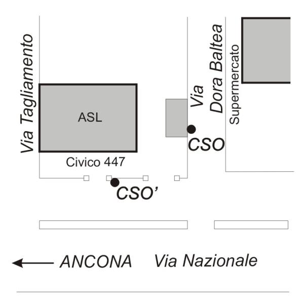 | Contrassegni | [{"simbolo_contrassegno":"B1","materializzazione":"(CSO) Bullone infisso sull'edificio di pertinenza all'A.S.L., in via Dora Baltea, nei pressi dello spigolo sinistro."},{"simbolo_contrassegno":"B4","materializzazione":"(CSO') Bulloncino Inox di tipo GPS infisso a destra del cancello, sul muretto di cinta del fabbricato dell'A.S.L., distretto di Montesilvano, affacciantesi su Via Nazionale."}] |