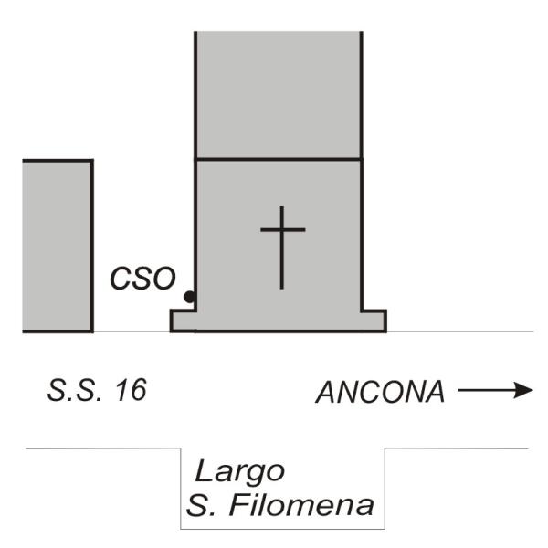 [{"simbolo_contrassegno":"B1","materializzazione":"(CSO) Bullone infisso sul fianco sinistro della chiesa di S. Filomena, nei pressi dello spigolo destro."}]