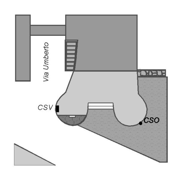 | Contrassegni | [{"simbolo_contrassegno":"B1","materializzazione":"(CSO) Bullone posto alla base del torrione circolare destro della porta del paese."},{"simbolo_contrassegno":"V3","materializzazione":"(CSV) Piastrina in ghisa fissata sul lato, volto verso via Umberto, del torrione circolare sinistro della stessa porta."}] |