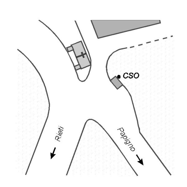 [{"simbolo_contrassegno":"B1","materializzazione":"(CSO) Bullone posto sul muro di contenimento, verso la testata, della base della piattaforma dell'illuminazione pubblica, situata al bivio per Papigno."}]