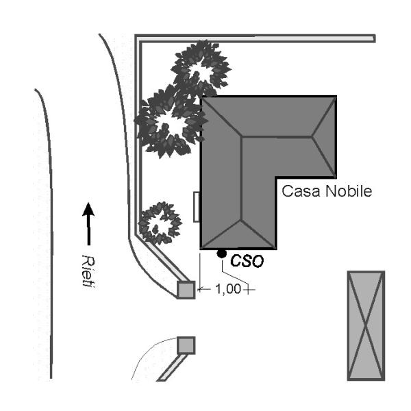 | Contrassegni | [{"simbolo_contrassegno":"B1","materializzazione":"(CSO) Bullone infisso alla base del muro laterale della casa, ad un metro dallo spigolo sinistro."}] |