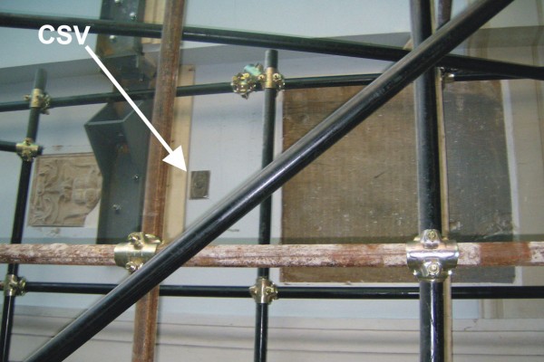 | Contrassegni | [{"simbolo_contrassegno":"V3","materializzazione":"(CSV) – Piastrina posta a destra dell'accesso alle scala di sinistra all'interno del corridoio per accedere al Museo Civico Archeologico."}] |